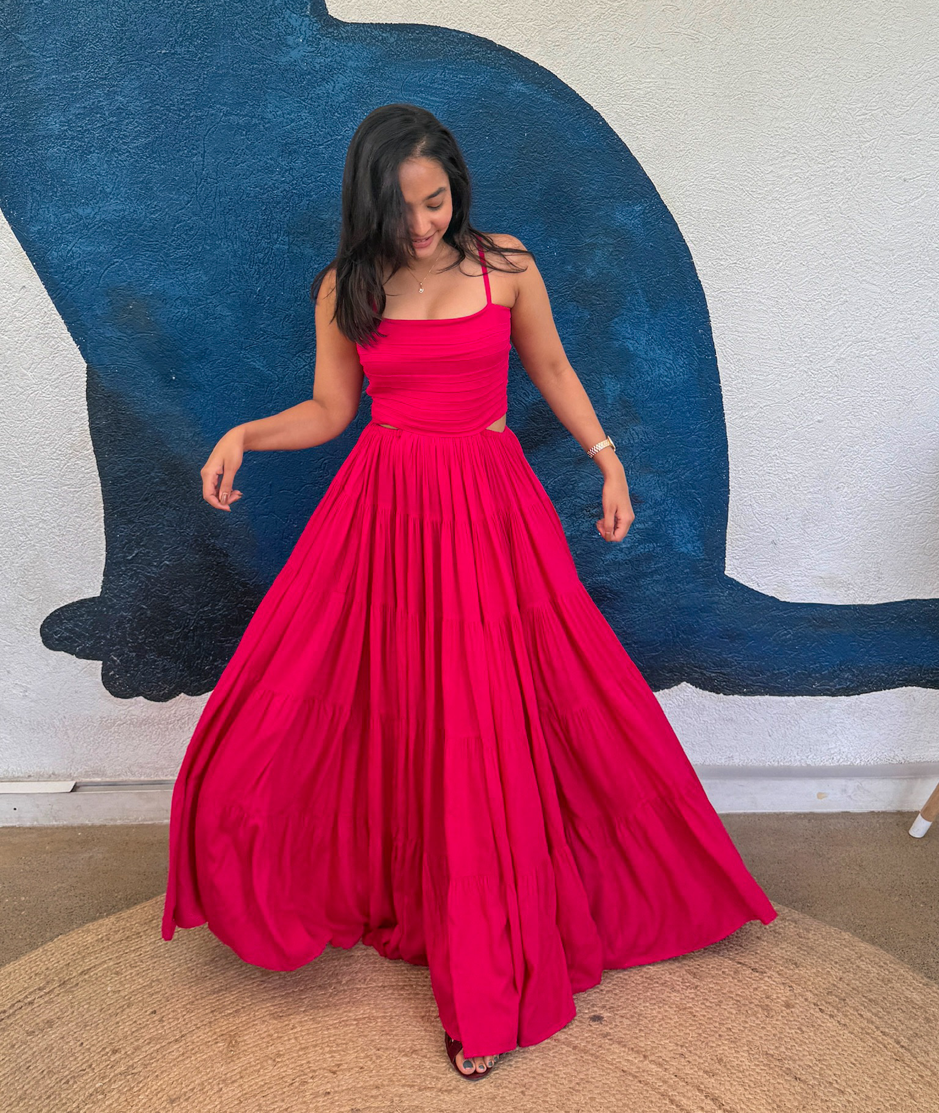 The pink dress fits perfectly and the cut-out detail is so cute.