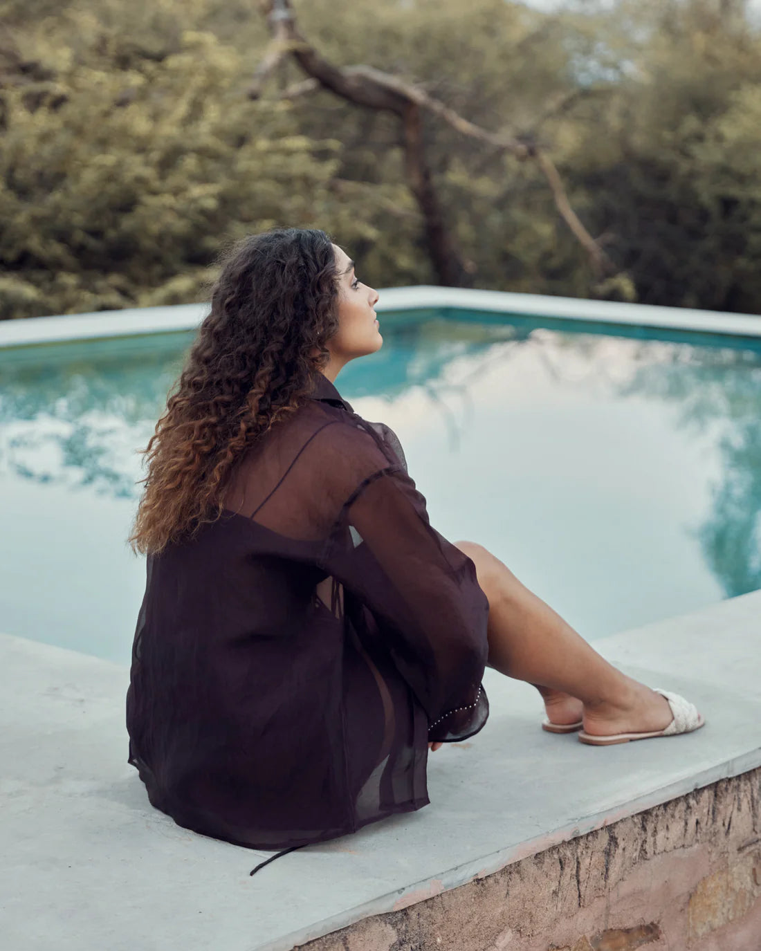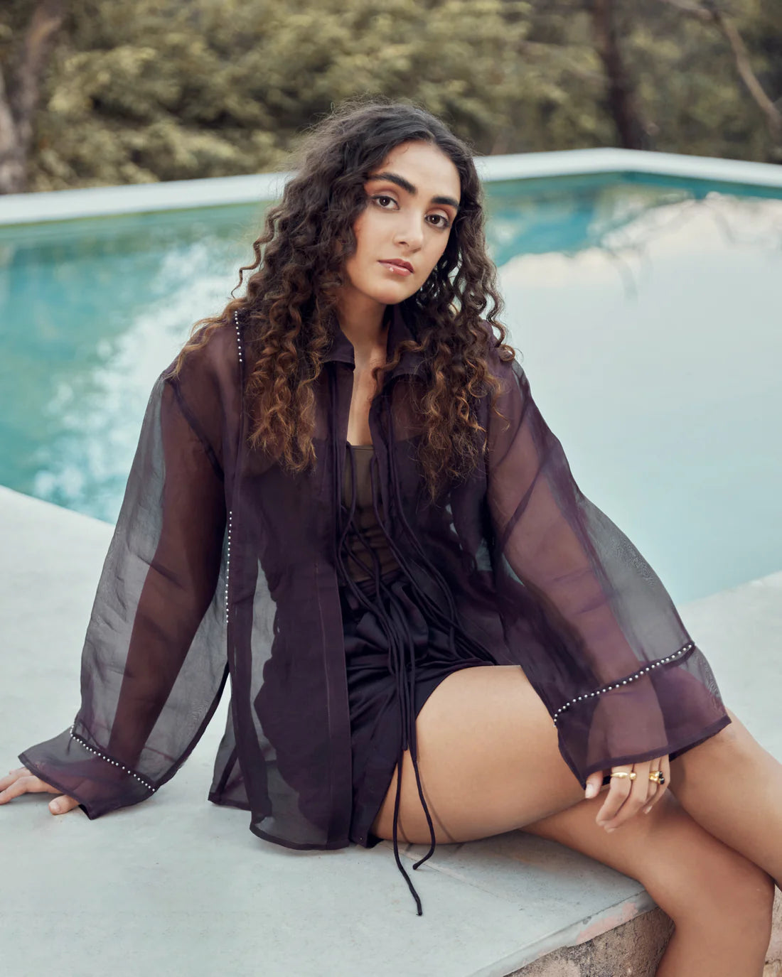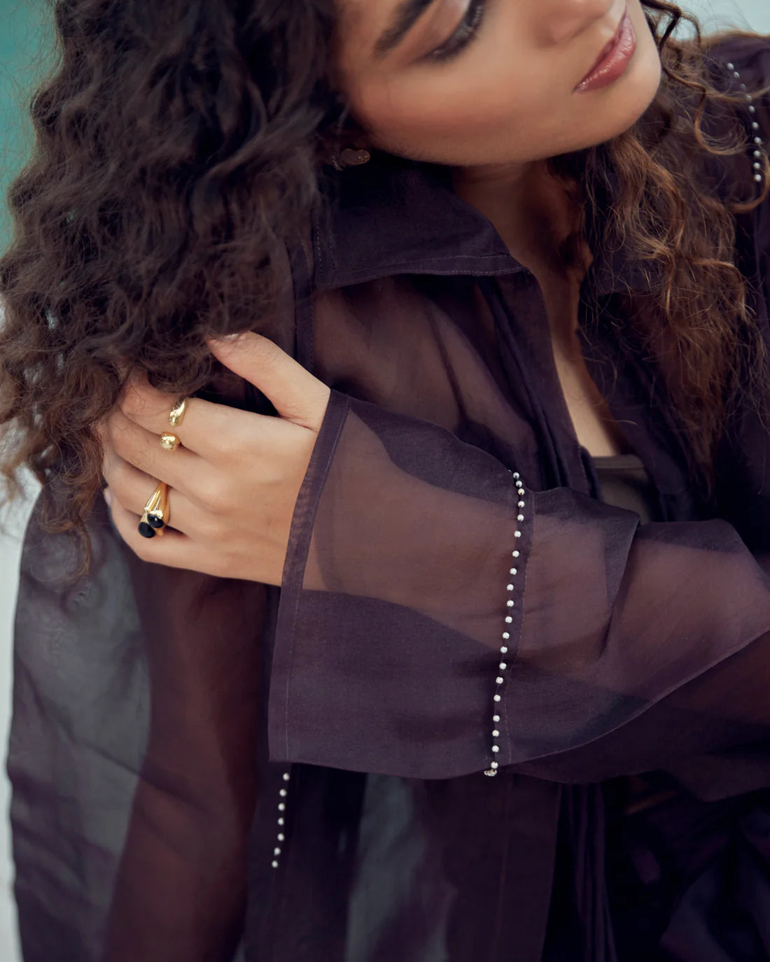 Deep purple top with strings